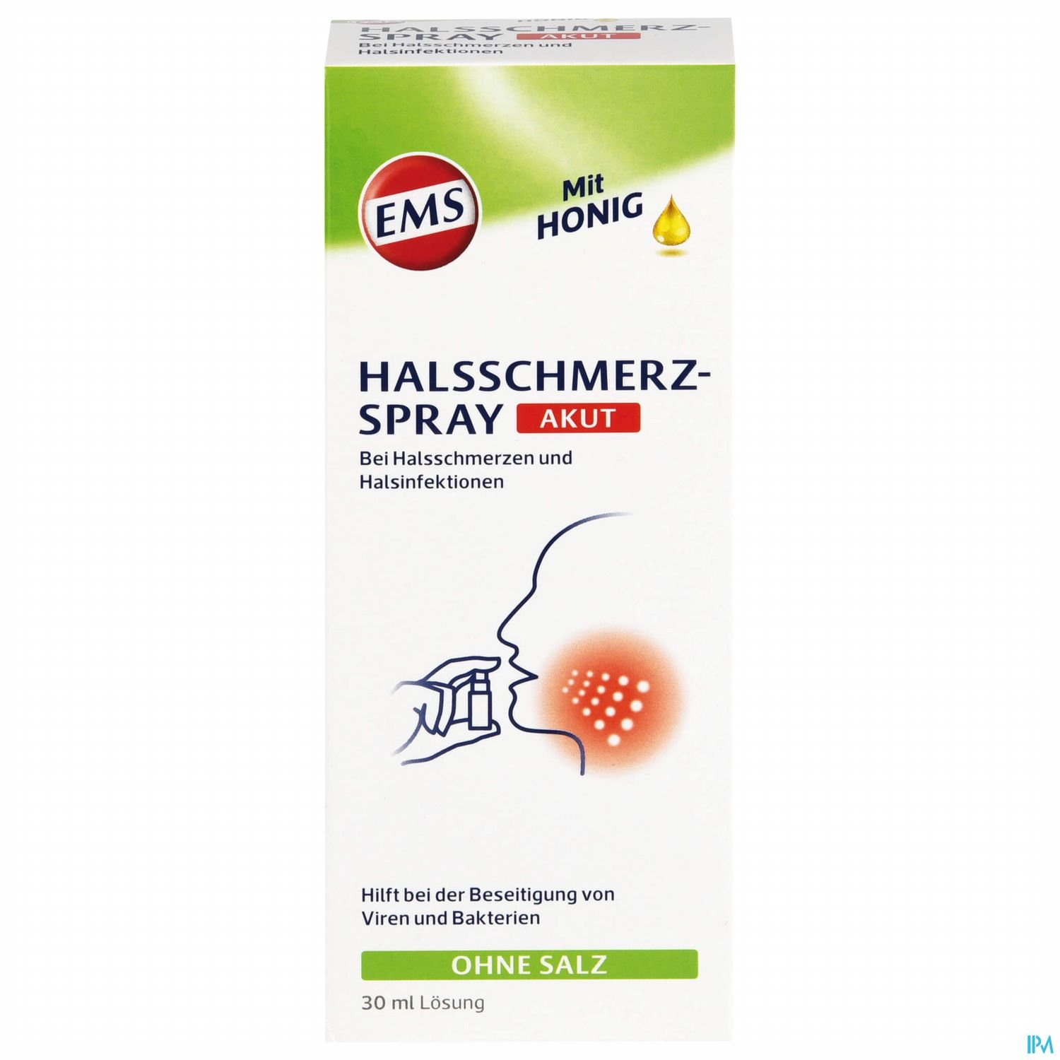 Wie ist Ems Halsschmerz-Spray Akut anzuwenden?Nur für die örtliche (topische) Anwendung. Schütteln Sie das Spray vorsichtig und entfernen Sie die Kappe. Vor dem ersten Gebrauch betätigen Sie die Pumpe, indem Sie ein- oder zweimal draufdrücken. Dann richten Sie die Öffnung des Behälters in Richtung des oberen Rachens, wie in der Abbildung unten gezeigt, und betätigen Sie die Pumpe. Bei jüngeren Patienten (6-10 Jahre) sollte ein Erwachsener Hilfestellung geben. Tragen Sie 4 bis 5 Sprühstöße auf, ohne dabei einzuatmen. Wir empfehlen, Ems Halsschmerz-Spray Akut in den ersten 2 bis 3 Stunden der Behandlung alle 20 bis 30 Minuten anzuwenden und danach 3- bis 4-mal pro Tag bis zur vollständigen Erholung.Wie lange sollten Sie Ems Halsschmerz-Spray Akut verwenden?Sollten sich die Beschwerden trotz der Verwendung von Ems Halsschmerz-Spray Akut nicht innerhalb von 7 Tagen verbessern, empfehlen wir das Aufsuchen eines Arztes.Welche Nebenwirkungen kann Ems Halsschmerz-Spray Akut haben?Es sind keine Nebenwirkungen bekannt und es besteht keine Gesundheitsgefährdung beim Verschlucken.Kinder: Ems Halsschmerz-Spray Akut darf von Kindern über 6 Jahre unter Einhaltung der empfohlenen Dosis angewendet werden.Anwendung in Schwangerschaft und Stillzeit: Aufgrund unzureichender Daten wird die Anwendung während der Schwangerschaft und der Stillzeit nicht empfohlen.Darreichungsform und Packungsgröße: Ems Halsschmerz-Spray Akut ist in der folgenden Packungsgröße erhältlich: 30 ml Spray.Bitte beachten: Vor der Anwendung Hände waschen. Dieses Produkt ist nur für die örtliche (topische) Anwendung bestimmt. Während der Anwendung von Ems Halsschmerz-Spray Akut nicht einatmen. Beachten Sie bitte die empfohlene Dosierung. Verschließen Sie nach jedem Gebrauch das Spray mit dem Deckel. Aufgrund der Zähflüssigkeit können einige Tropfen an der Öffnung des Sprühkopfes hängen bleiben. Wischen Sie die Öffnung nach jedem Gebrauch mithilfe eines Papiertaschentuches oder Wattestäbchens ab. Tägliche Dosierung liefert weniger als 2 g Zucker pro Tag. Außerhalb der Reichweite von Kindern aufbewahren. Bei Raumtemperatur lagern. Nicht kühlen oder einfrieren. Verwenden Sie das Produkt nicht, wenn das Spray beschädigt ist, nach Ablauf des Verfallsdatums oder mehr als 30 Tage nach dem ersten Gebrauch.Diese Gebrauchsinformation wurde zuletzt überarbeitet im April 2017.